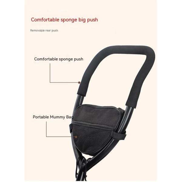 Rotatable front seat, enlarged rear seat, front and rear soft leather seats, enlarged rear frame, dynamic music light box on the front, double rear brakes, rear push handle with mommy bag